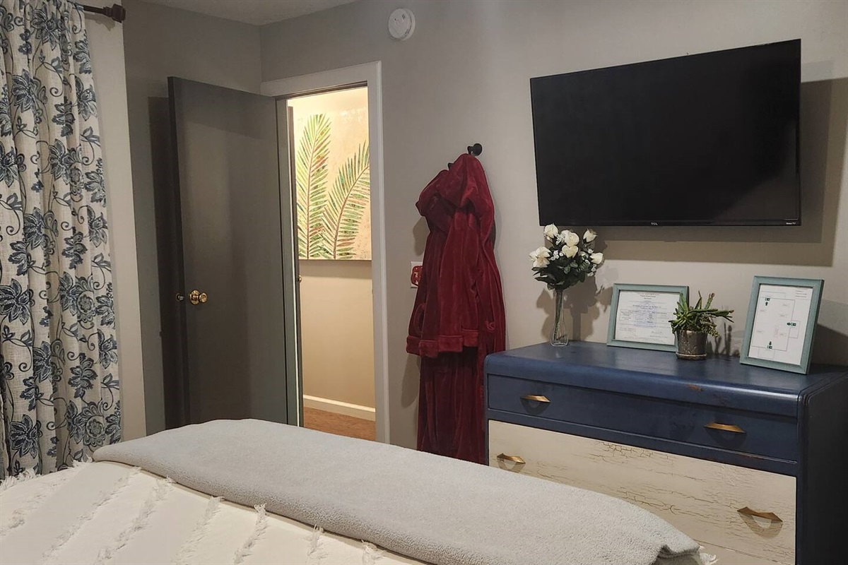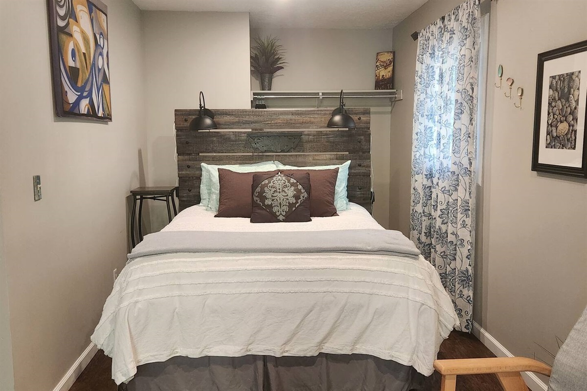 • 🛏️ Second Bedroom: Queen bed, plush bedding, French Door Deck Access